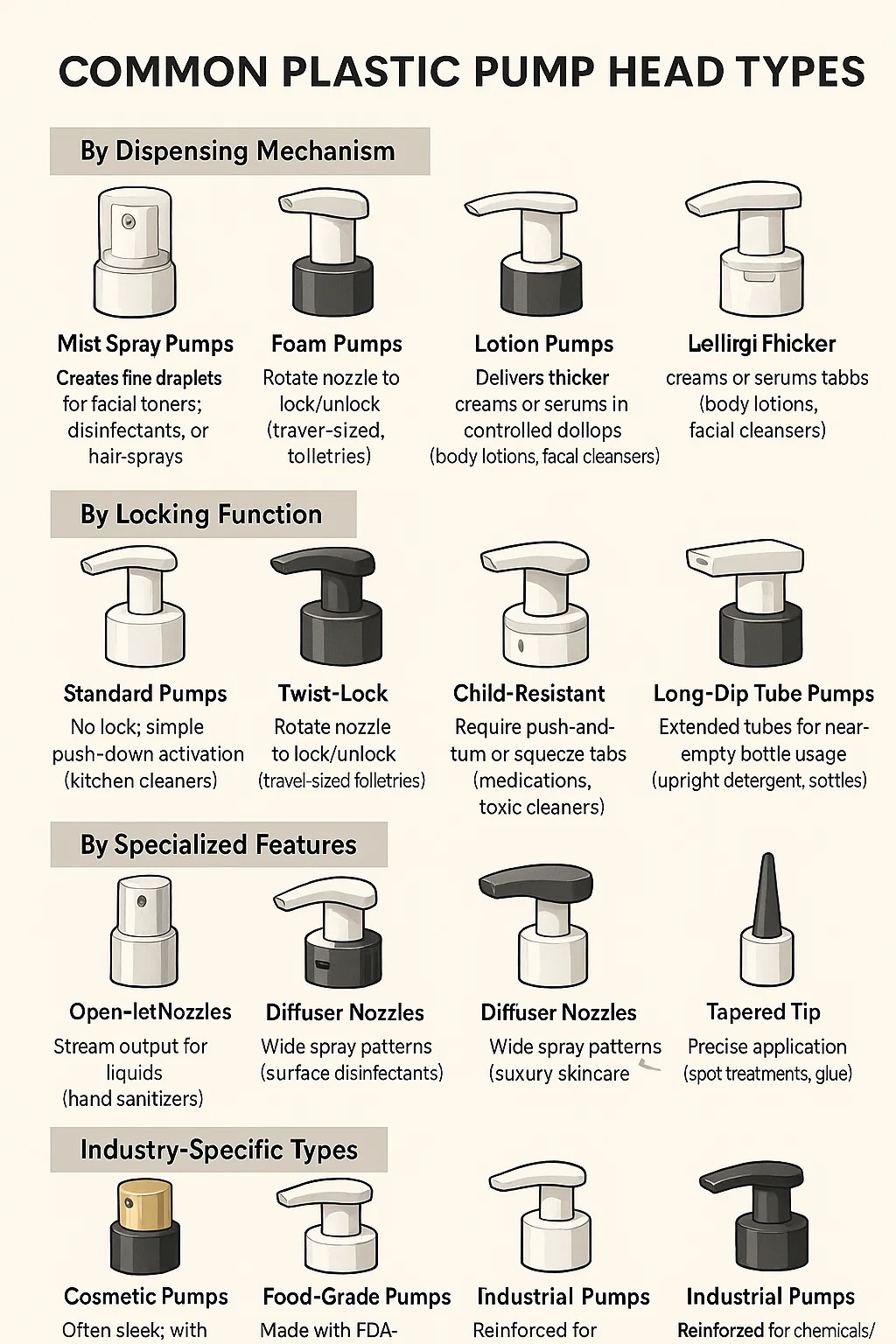 İşte ortak bir döküm plastik pompa Fonksiyonel tasarımlarına ve uygulamalarına dayalı türler: